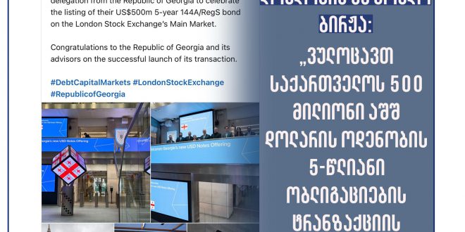 საქართველოს მთავრობის მიერ 500 მლნ აშშ დოლარის ოდენობის ევროობლიგაციების წარმატებულ გამოშვებას ეხმაურება ლონდონის საფონდო ბირჟა.