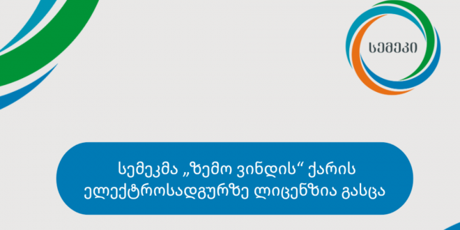 საქართველოს ენერგეტიკისა და წყალმომარაგების მარეგულირებელმა ეროვნულმა კომისიამ (სემეკ) შპს „ზემო ვინდის“ ქარის ელექტროსადგურზე ელექტროენერგიის წარმოების ლიცენზია გასცა.